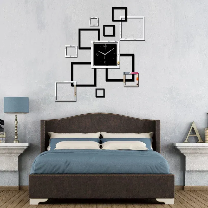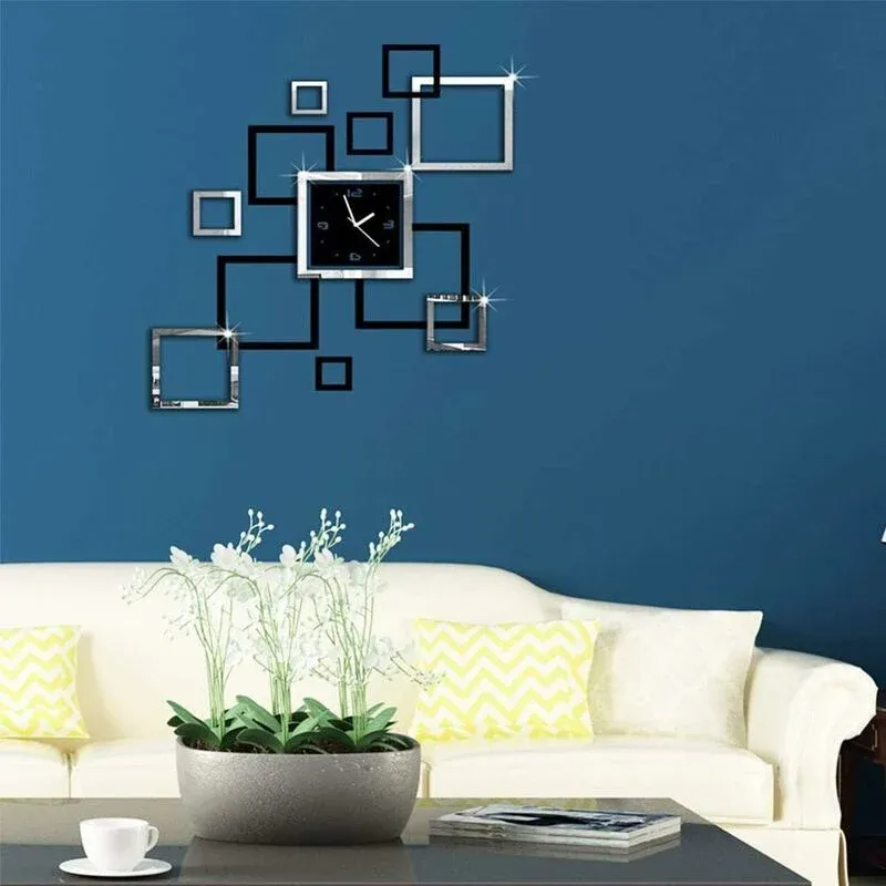 This 3D DIY Acrylic Wall Clock is a modern and creative addition to any living room. The clock features a square mirror design with a wooden frame, giving it a unique and stylish look. The clock is available in two color options, Golden Black or Silver Black, allowing you to choose the perfect match for your home decor. The clock is made of high-quality acrylic material and runs on quartz movement, ensuring accurate timekeeping. This clock is easy to install and will add a touch of elegance to any room. Perfect for those who appreciate modern design and functionality.