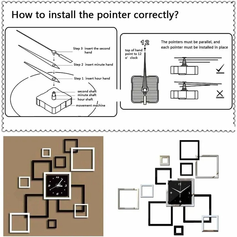 Specifications of 3d Diy Acrylic Wall Clock Modern Design Clock Decoration Living Room Quartz Acrylic Creative Square Mirror Stereo Wooden Wall Clock - Acrylic Wall Clock Golden Black / Silver Black ( mdf black and golden/ Silver acrylic)