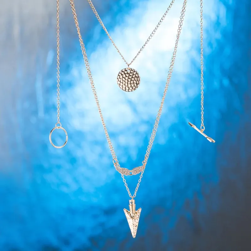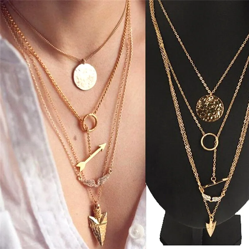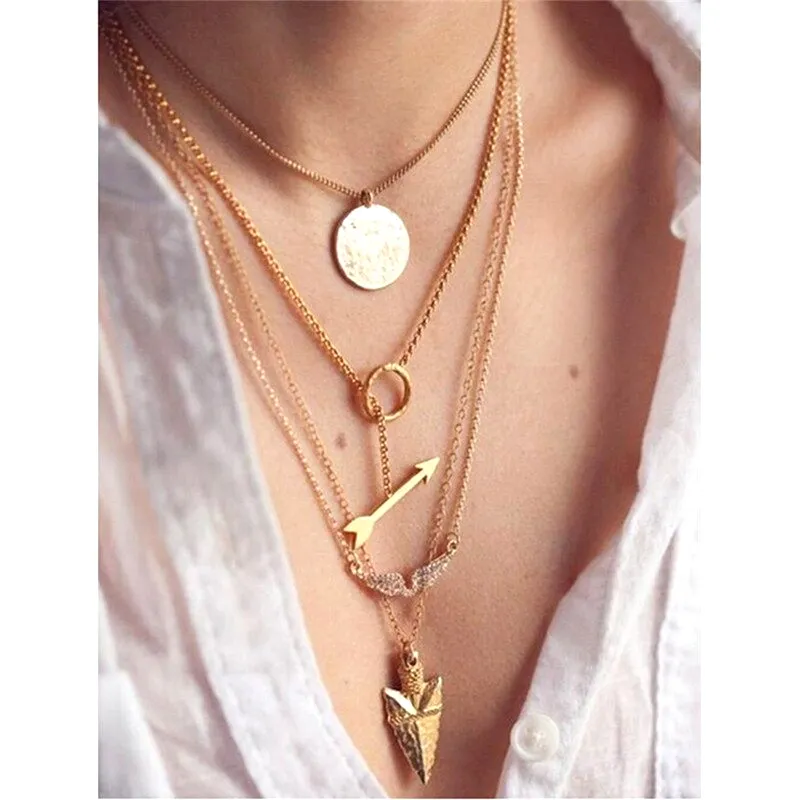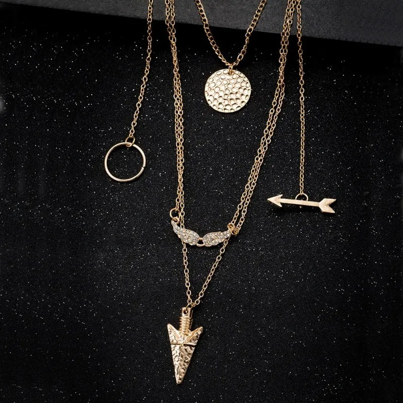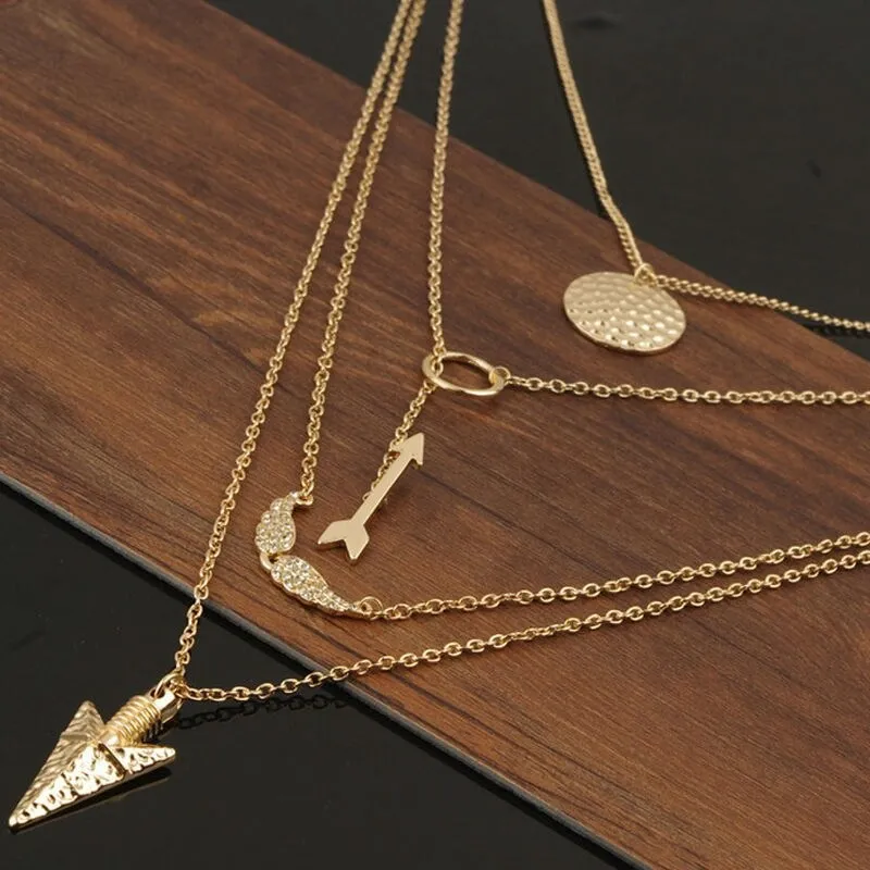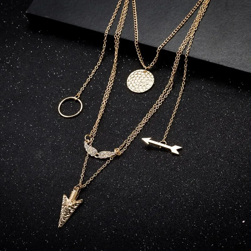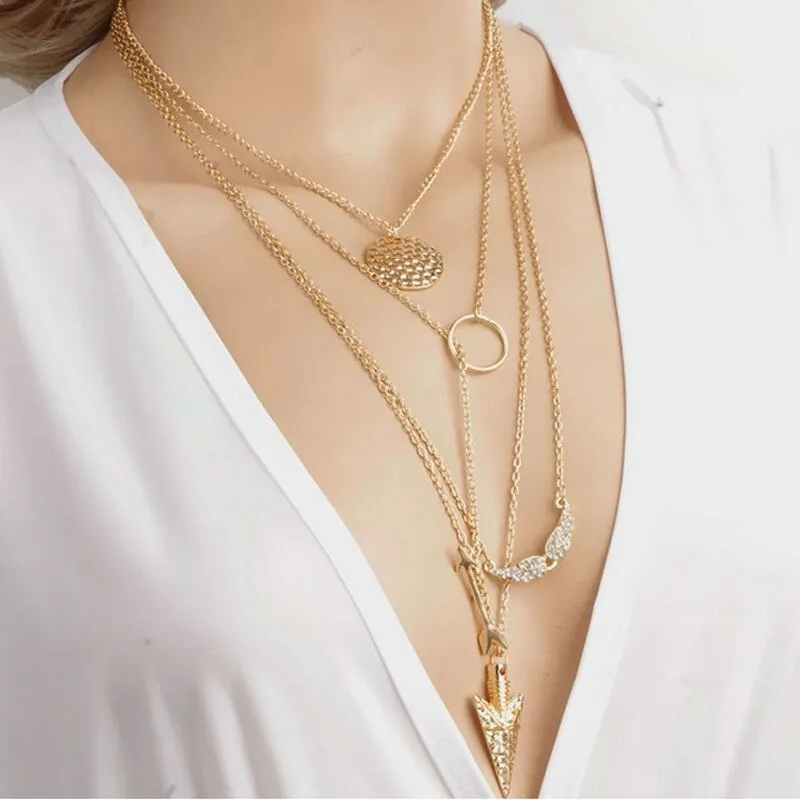 5 in 1 Gold Color Multi Layered Alloy Arrow Necklace For Girls