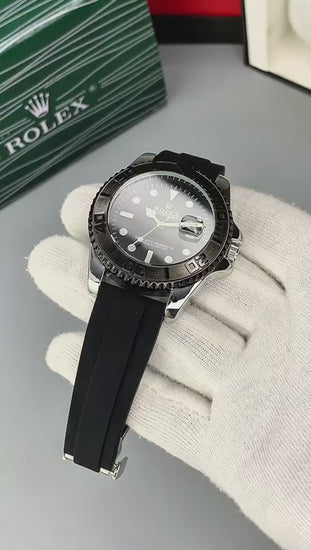 ROLEX YACHT-Quartz Machine Master Lock Date Working Rubber Silicone Strap