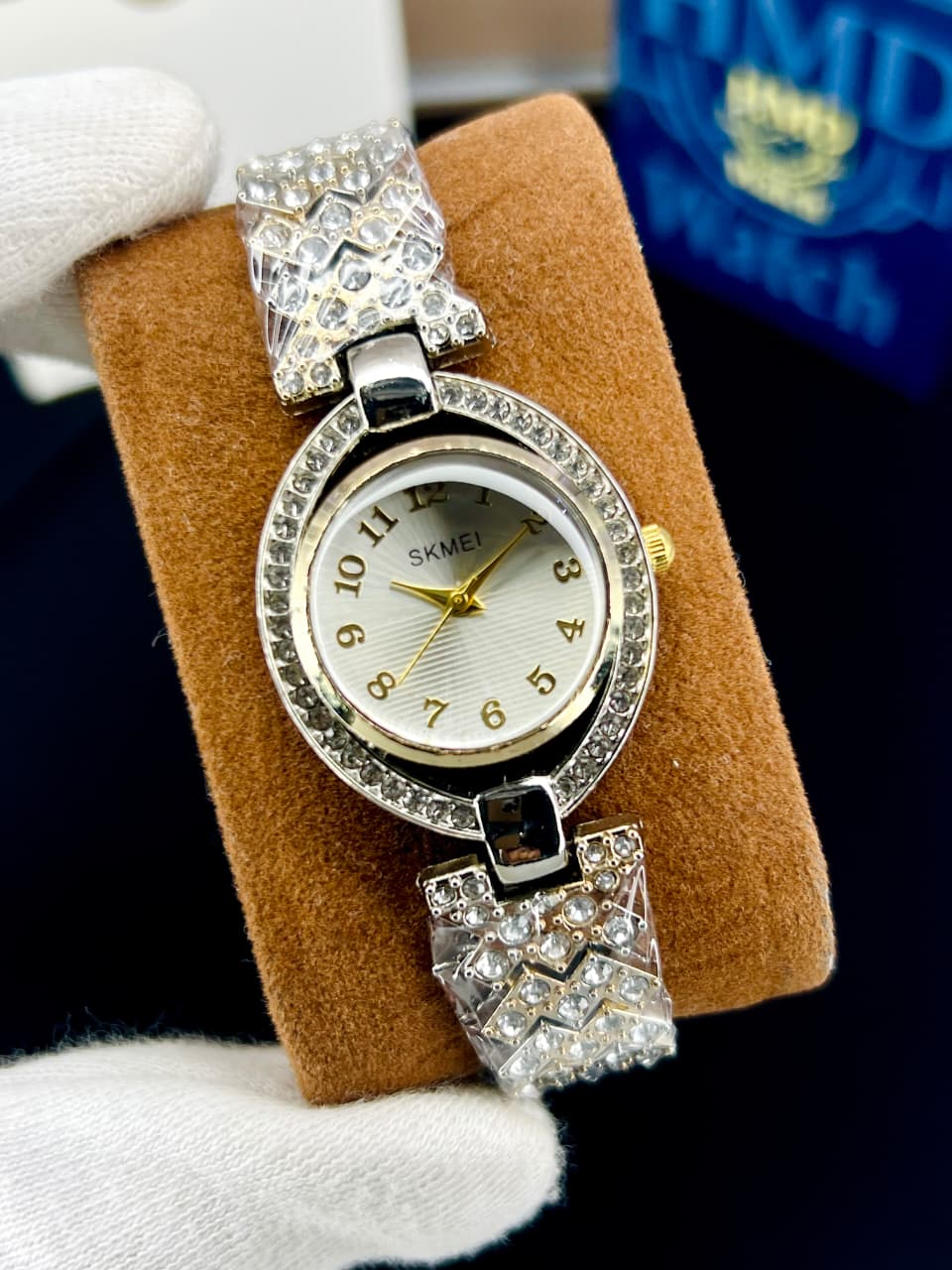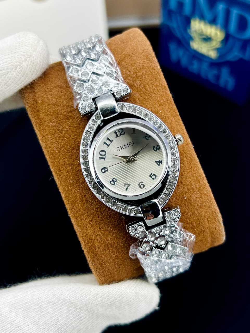 The SKMEI Women’s Watch combines elegance with everyday practicality. Designed with a stone-detailed chain strap, this watch adds a refined touch to both casual and formal outfits.