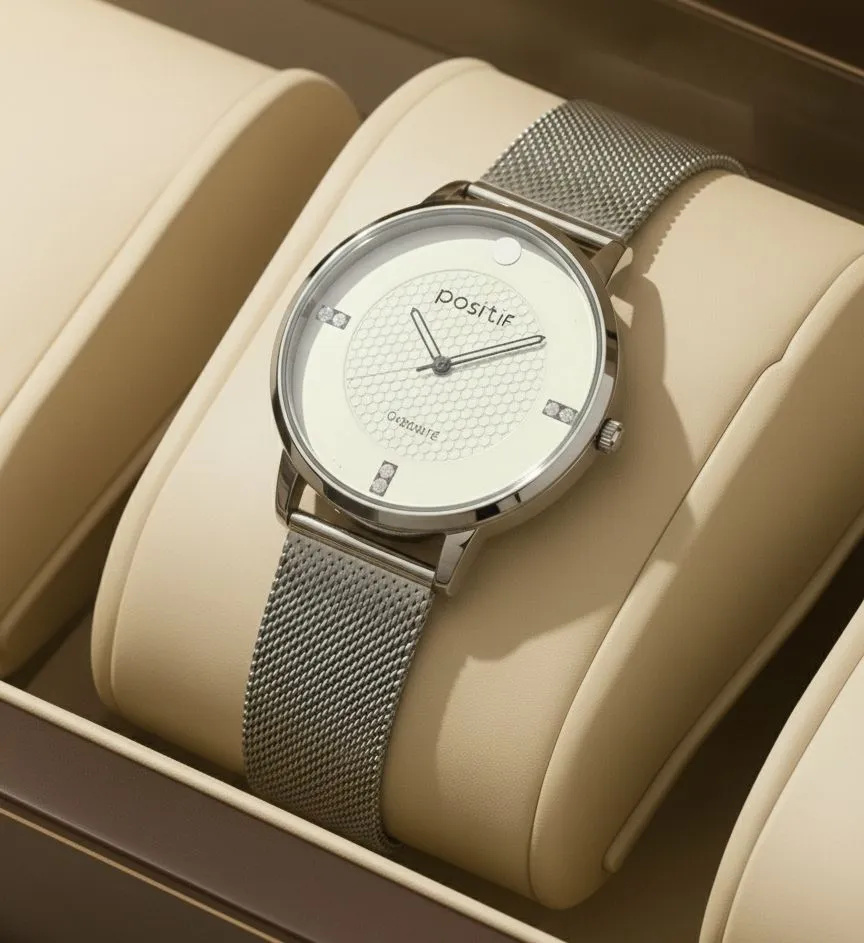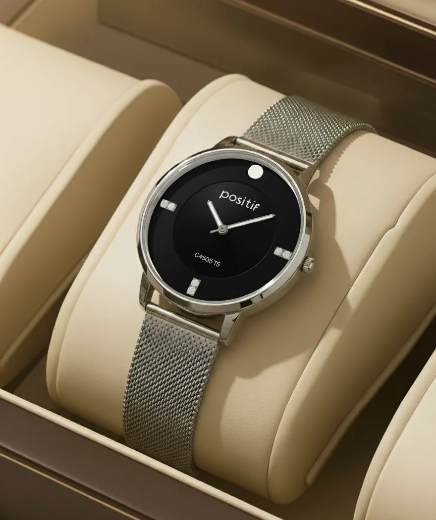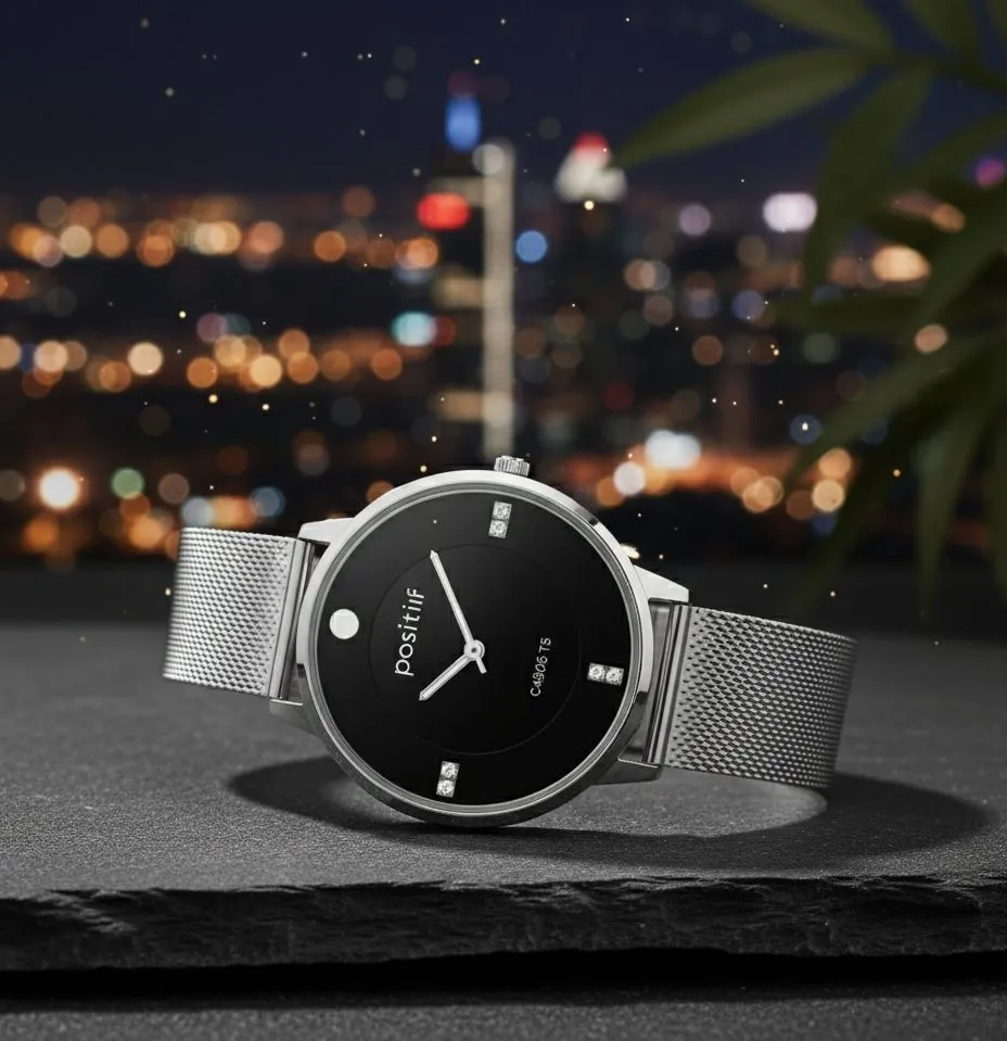 Available in a crisp white/silver dial and a bold, elegant black dial (as requested) to match any style. Both feature a clean, minimalist design with dazzling hour markers.