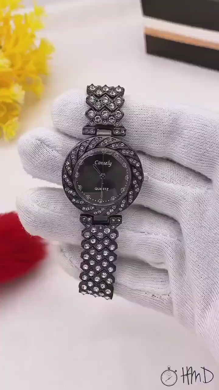 This watch doesn’t scream luxury — it shows it. The polished stone-studded chain paired with a sleek dial creates a classy statement piece you can wear anywhere.